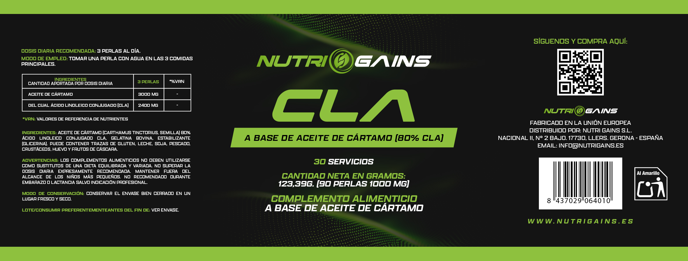 Envío express en 24 horasCLA NUTRI GAINS (90 Perlas)