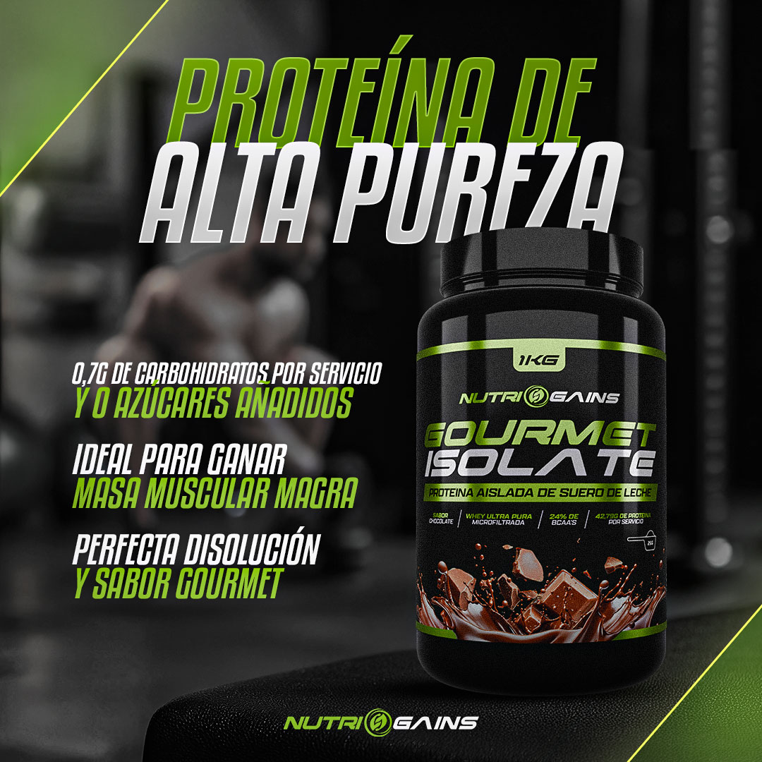 Nuestra Gourmet Isolate Chocolate aporta 85,59 gramos de proteína por cada 100 gramos de producto siendo nuestra proteina aislada con mayor concentración de proteinas, obtenida mediante un sistema avanzado de microfiltración de flujo cruzado (3CMF). Esta tecnología permite conservar las fracciones más valiosas del suero, con una textura ultra fina y disolución instantánea.